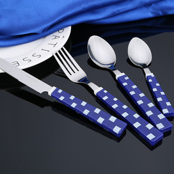 Conjunto De Talheres Azul Xadrez Estilo Moderno Conjunto De Talheres De Aço Inoxidável Estilo Clássico 4/24 Colher Facas Garfo Talheres Set